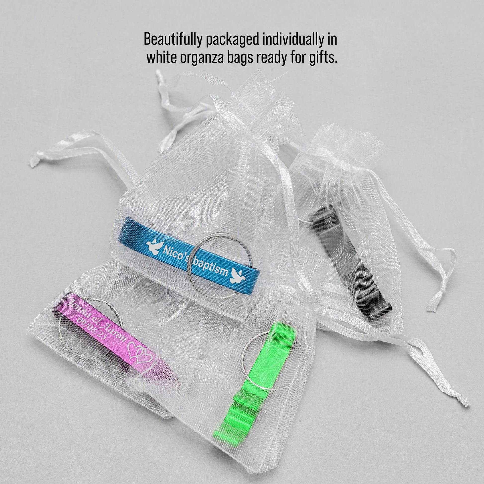 • 𝐏𝐚𝐜𝐤𝐚𝐠𝐢𝐧𝐠: Each opener comes individually wrapped in an organza bag