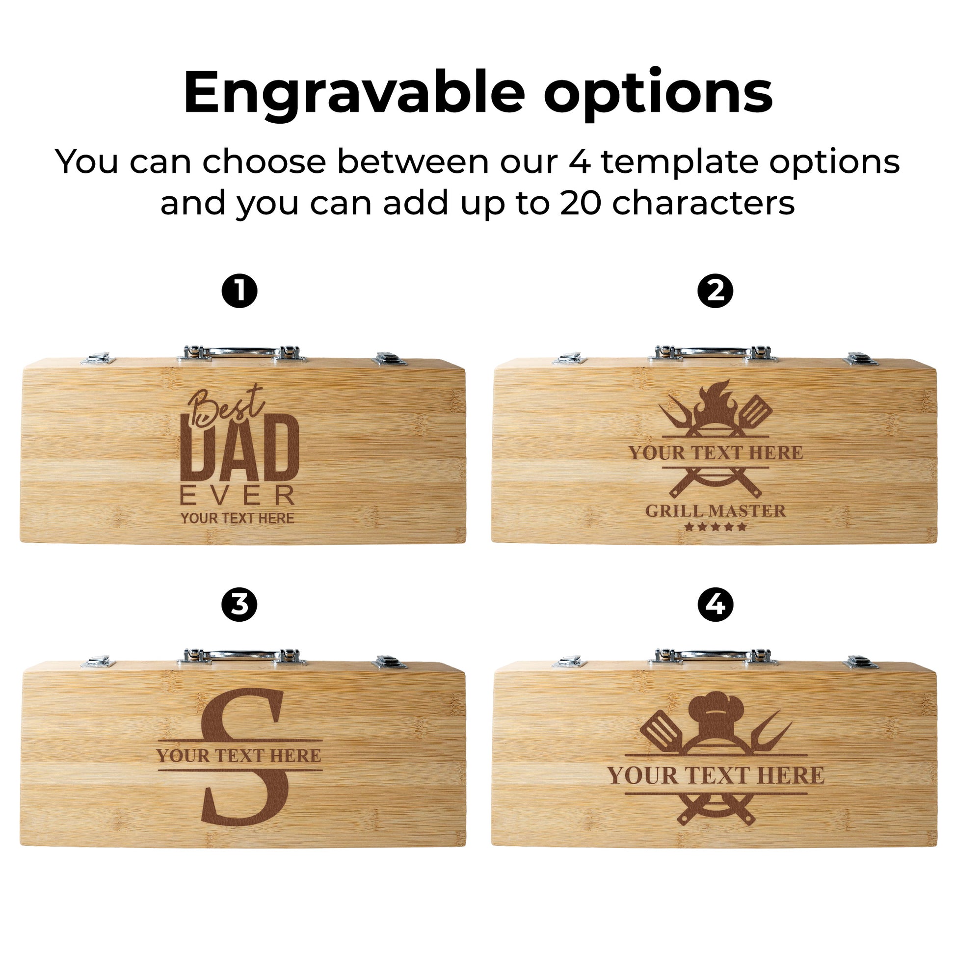 โข Design Options: 4 unique engraving templates available