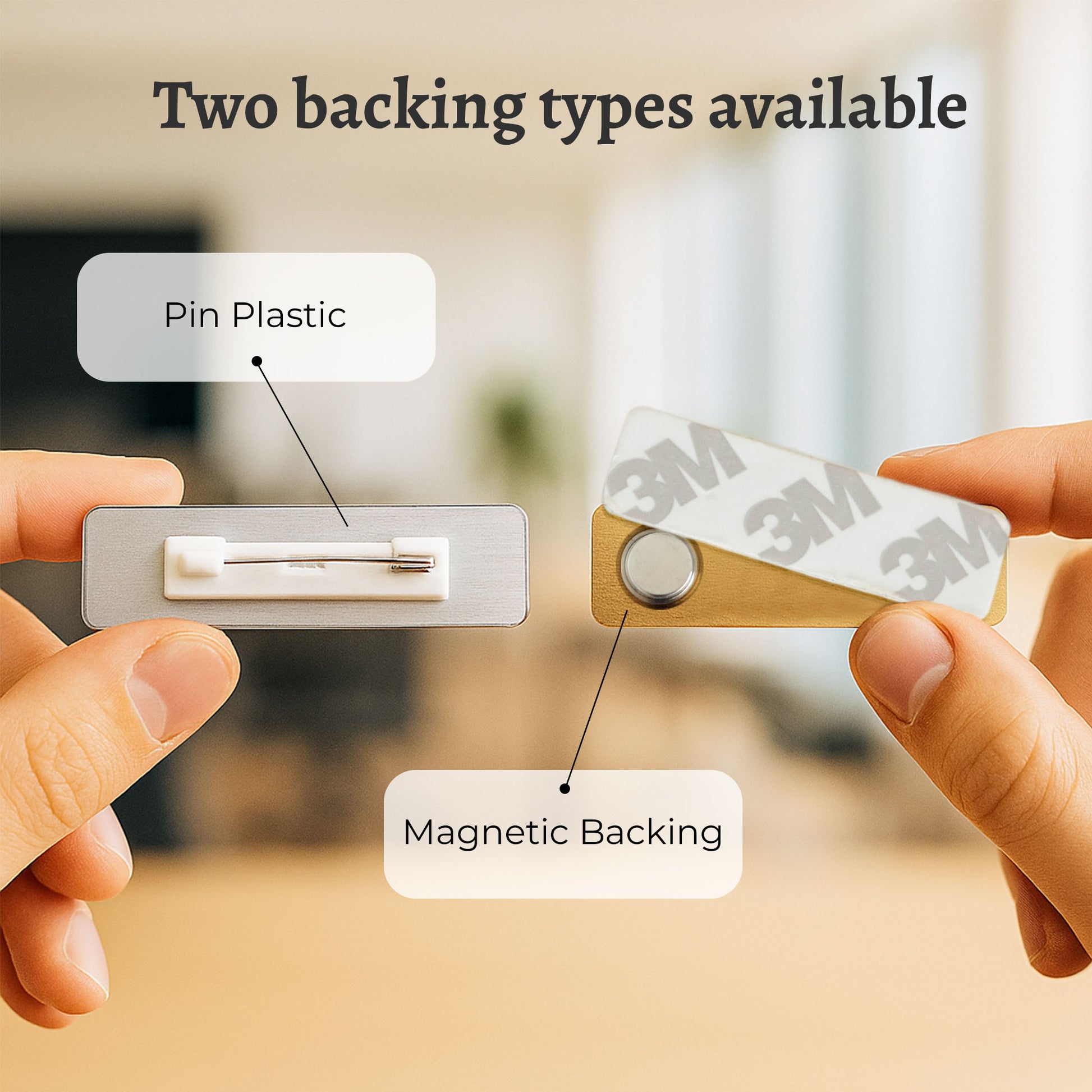 Waitstaff, teachers, nurses, customer service, receptionists, retail associates, and office teams who need a professional, easy-to-read name badge that reflects your brand.