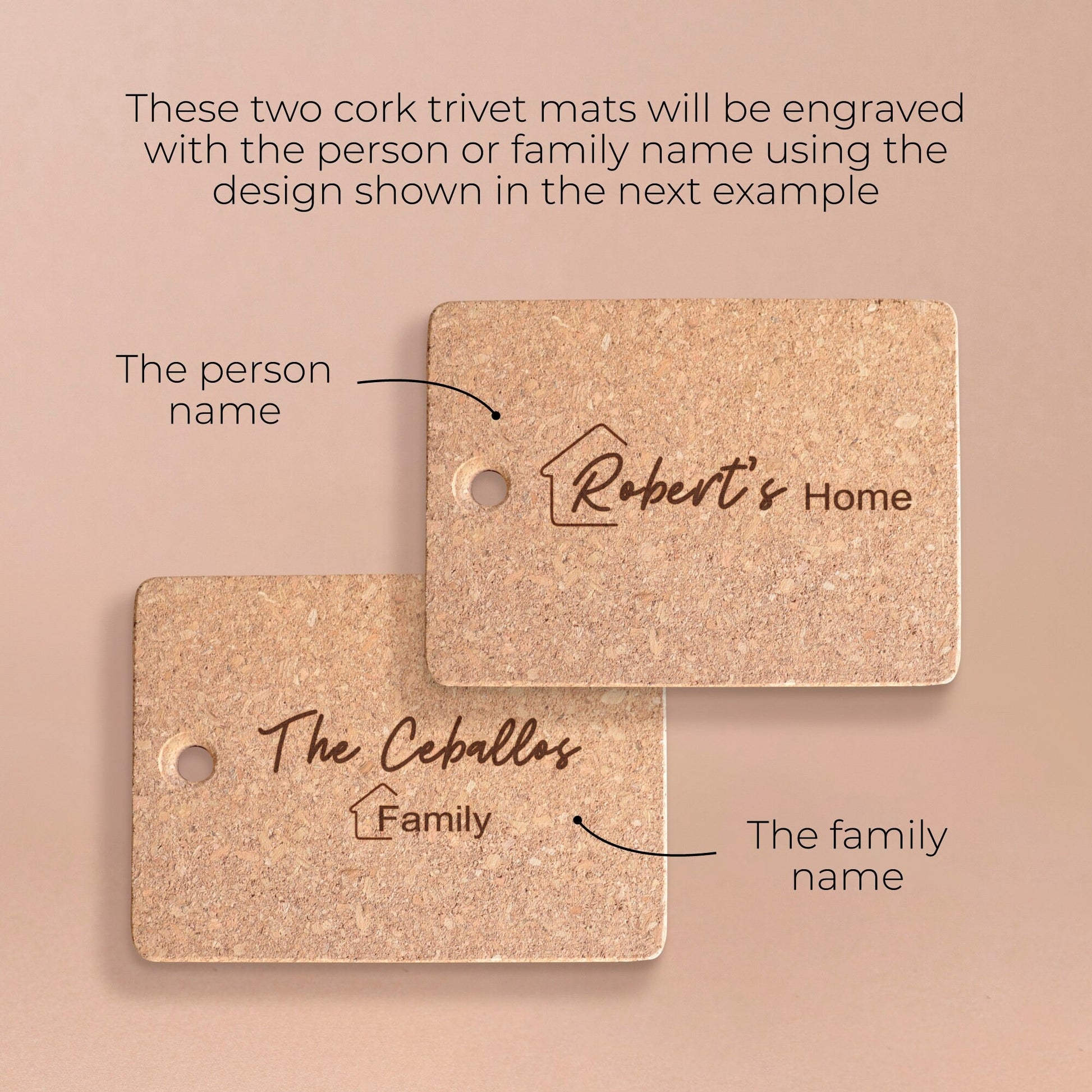 โข 2 engraved cork trivets