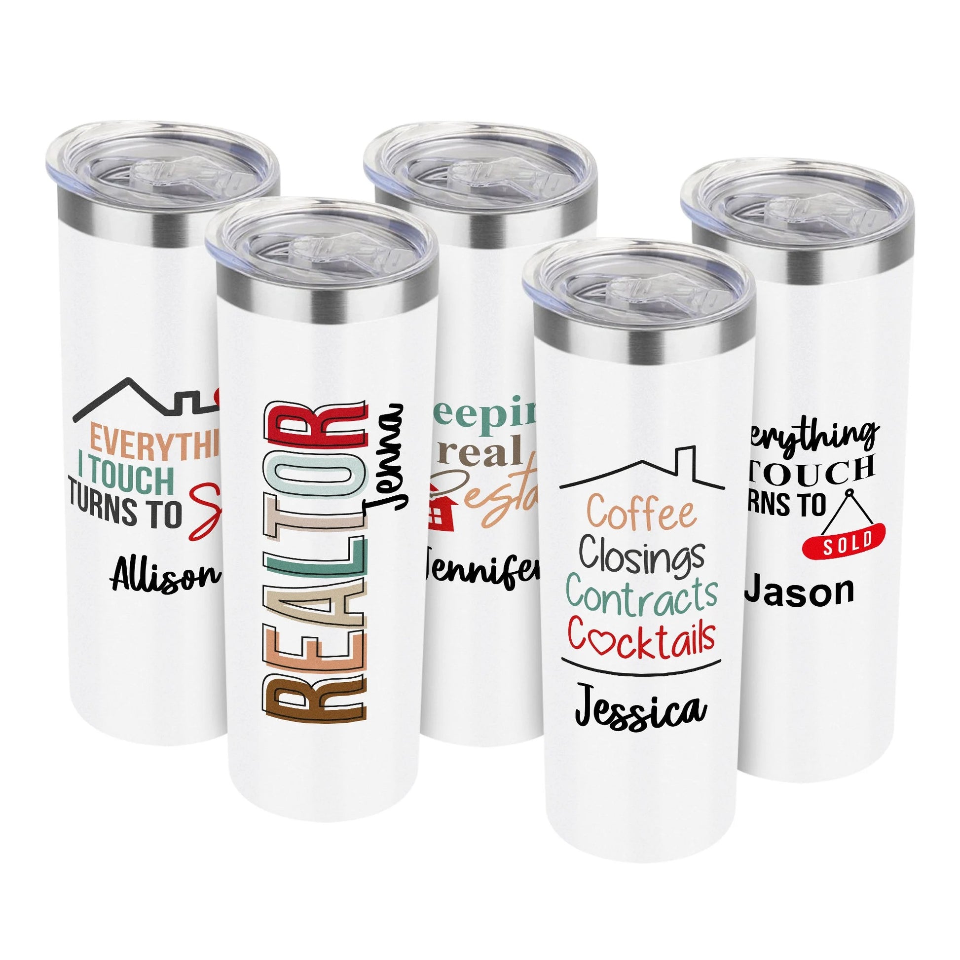Celebrate your real estate success with a custom tumbler thatβs as professional as you are. Whether itβs a gift for a fellow agent, a thank-you for a client, or a way to mark a closed deal, our 20oz stainless steel tumblers are the perfect choice. Sleek, durable, and fully personalized β theyβre designed to elevate your daily routine and showcase your brand with style.